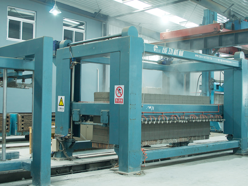翻轉(zhuǎn)行車、切割機(jī)是加氣混凝土生產(chǎn)線中的主要設(shè)備,翻轉(zhuǎn)切割工藝是對加氣混凝土設(shè)備坯體進(jìn)行分割和外形加工,使之達(dá)到外觀尺寸要求,加氣混凝土翻轉(zhuǎn)切割工藝體現(xiàn)加氣混凝土便于進(jìn)行大體積成型、外形尺寸靈活多樣而能大規(guī)模機(jī)械化生產(chǎn)的特點(diǎn)。