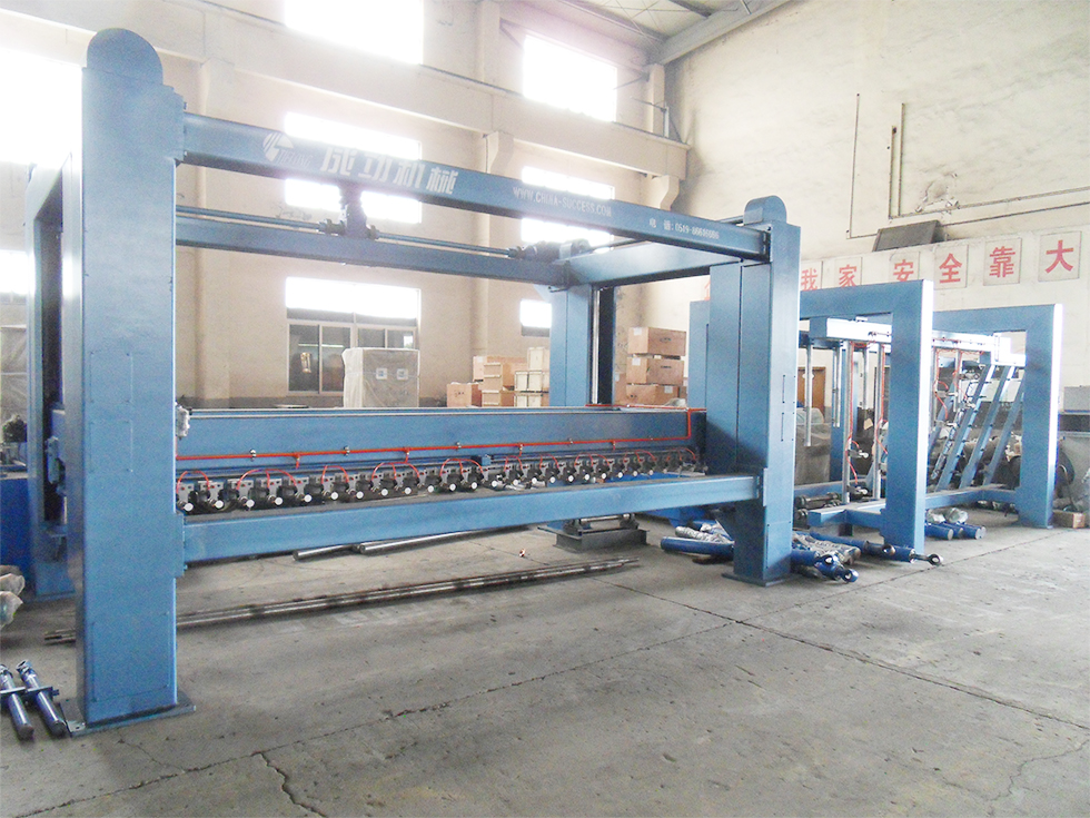 掰板機(jī)用于將立式出釜的坯體由機(jī)械完成層與層的掰離,該機(jī)械安裝在加氣塊成品輸送端,其自動(dòng)完成掰離工序,并進(jìn)行成品編組。